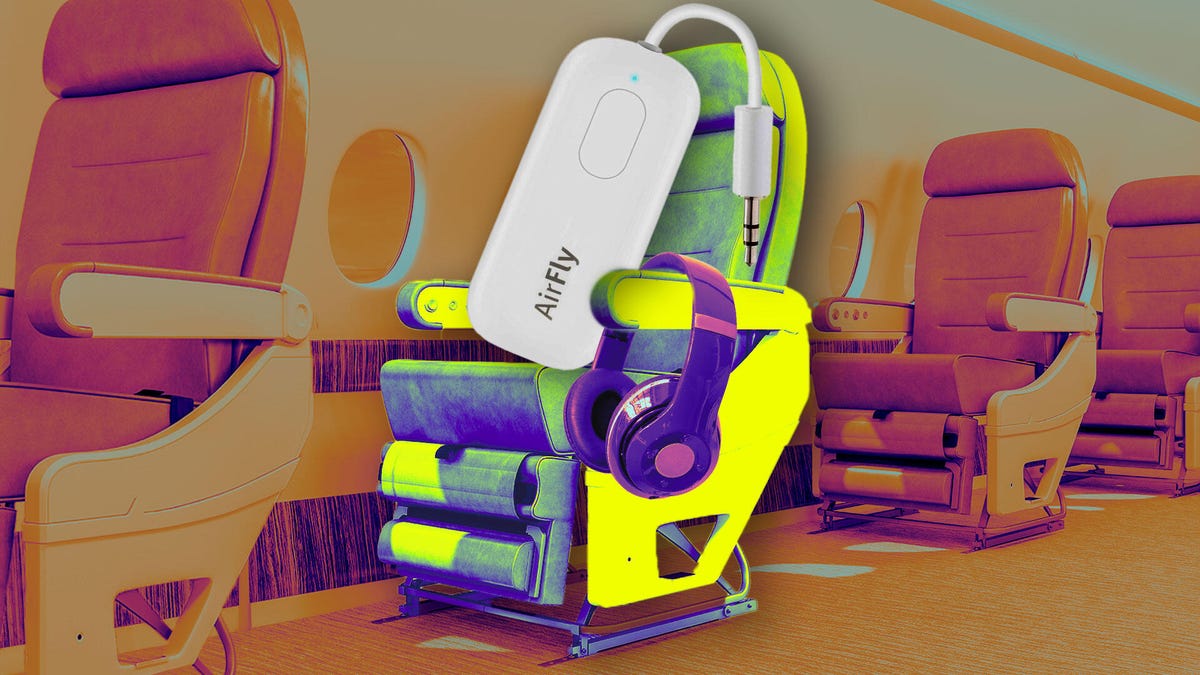 AirFly Bluetooth Adapter yra garso siųstuvas ir imtuvas, veikiantis su Apple, Bose ir kitomis belaidėmis ausinėmis. Tiesiog prijunkite programėlę į lėktuvo, autobuso ar traukinio pramogų centro ausinių lizdą ir jis sukurs Bluetooth ryšį. Taip pat prie adapterio galite prijungti iki dviejų ausinių rinkinių. Aš asmeniškai suporuoju „AirFly“ su savo „AirPods Pro“. kad galėčiau naudoti foninio triukšmo panaikinimo funkciją.